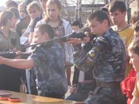 12-13 апреля на базе учебного корпуса МВД проходили полевые сборы правовых кадетских классов города Ижевска. От нашей школы участвовали кадеты 9 и 10 классов. Все 130 участников были разделены на 5 отрядов. Во главе каждого отряда стоял офицер. Программа сборов включала: полосу препятствий, стрельбу из пневматической винтовки, дартц, перетягивание каната. После военно-спортивных соревнований все отряды отправились на занятия. Кадеты углубили свои знания по истории МВД, подразделениях МВД и их подвигах. Многое узнали о вооружении, единоборствах, криминалистике. Наши кадеты показали отличные знания на викторине по истории МВД – Роман Лихачёв, 10 к. Героями дня выбраны – Роман Лихачёв, Салават Айманов, Давид Григорян. Кроме того наши кадеты проводили показательные выступления по строевой подготовке для всех собравшихся.