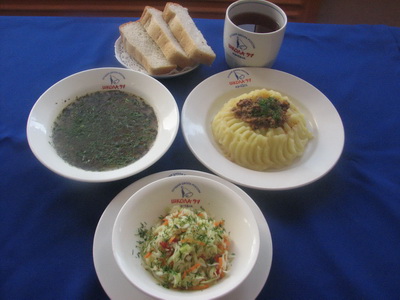 В школьном меню ученикам предлагается до 9 различных комплексов. Кроме того, каждый день в меню имеется 10-12 наименований овощных и фруктовых салатов, 2-3 первых блюда, 10-12 вторых блюд, широкий ассортимент мучных и кондитерских изделий, а также обязательным в меню является рыбный день. В школе обучается 2060 учащихся, 96% учащихся школы охвачены всеми видами горячего питания. Это свидетельствует о хорошем качестве предлагаемого сервиса. Благодаря современному оборудованию школа предлагает большой ассортимент блюд и охватывает горячим питанием большое количества учащихся.