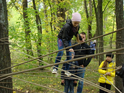 Какая осень проходит без вылазок класса на природу? Извилистые лесные тропинки, простор поля, родничок, ветерок, солнце — вот лучший отдых для души и тела. Учащиеся 2А, 4А и 4Г классов тоже не смогли усидеть в выходные дома и решили пройти «Туристическую тропу» в лесу. Долго поплутав по лесу, вышли наконец, на нужное место. Дети образовали 4 разновозрастные команды «Скалолазы», «Древолазы», «Звезда», «Суперстар», получили маршрутные листы с названиями станций. Не остались в стороне и наши любимые мамы, которые тоже образовали команду «Девчата» и достойно прошли все веревочные испытания. На станциях находились папы, которые отмечали в маршрутных листах прохождение испытания. Самым интересным и сложным оказалось для ребят подняться на высокое дерево, открыть пакет с конфетами и слезть обратно. Некоторые мальчишки неоднократно пытались покорить высоту! Ребята с большим интересом и с пользой для здоровья провели время – показали свою ловкость и силу, преодолевая полосу препятствий. Ученица 4А класса Антропова Елизавета любит сочинять стихи и написала стих о «Туристической тропе»: