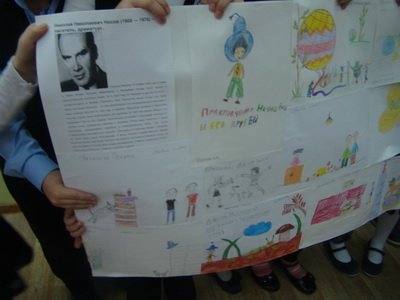 Что нужно знать о коррупции НовостиВыставка рисунковКто из нас не знаком с веселыми приключениями мальчишек в рассказе «Огурцы» или «Фантазеры»? Кто не смеялся, читая рассказы «Живая шляпа» или «Заколдованная буква»? Кто не помнит веселого и доброго Незнайку, имя которого стало нарицательным? 23 ноября 1908 года в Киеве, в семье эстрадного артиста, который в зависимости от обстоятельств работал и железнодорожником, родился Николай Николаевич Носов. Ребята 1в класса с большим удовольствием познакомились с творчеством этого замечательного писателя. Слушали аудиозапись рассказа «Заплатка». Читали сами, делились друг с другом впечатлениями и сделали выставку рисунков по произведениям Николая Носова. Вот что у нас получилось!