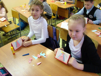 Мастер–класс по изготовлению открытокНа уроках технологии учащиеся 4а и 4г классов изготовили много открыток в технике «Квилинг». На мастер – классе по изготовлению новогодних открыток ребята узнали еще об одной технике «скрапбукинг». Скрапбукинг (скрэпбукинг) - это английское слово, переводится как «книга из вырезок». Скрапбу́кингом называют вид рукодельного искусства, заключающегося в изготовлении и оформлении семейных или личных фотоальбомов, а теперь и других скрап-объектов — начиная с открыток, коробочек, рамок и др. Все было задействовано для изготовления открыток: оберточная бумага, ленты, стразы, банты. Отличные открытки создали учащиеся 2а, 4а и 4г классов!