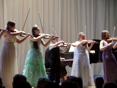 Новогодний концертТрадиционно в конце уходящего года учащиеся музыкальной школы участвуют в новогоднем концерте. Вот и 27 декабря прошел праздничный концерт. Ребята выступали и индивидуально, и в составе камерного оркестра, народного хора, ансамбля скрипачей, трио флейтистов. Также было представлено выступление хора 2 класса и сводного хора 3 и 4 классов. Все артисты очень старались, и зрители оценили их выступление громкими аплодисментами.