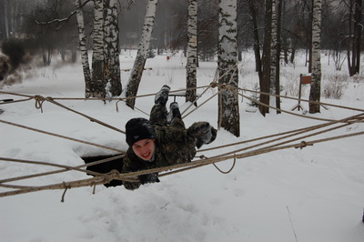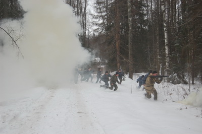 Майор Волков и возглавил марш-бросок длиной 7 километров, который стартовал от школы до загородного школьного лагеря «Черемушки». Дистанция далась нелегко: восьмиклассники в полном обмундировании, с противогазами, и десяти- и одиннадцатиклассники, которым пришлось нести еще и макеты автоматов Калашникова весом 3 с половиной килограмма каждый, преодолели расстояние за 45 минут. Уже на подходе к лагерю кадетов ждал сюрприз: за дело взялись сотрудники отдела специального назначения «Кречет» УФСИН России по Удмуртской Республике. Два бойца в маскировочной форме, заранее укрывшись в лесу, устроили ребятам засаду. В ход пошли дымовые шашки, автоматные очереди с обеих сторон дороги. Отряд оказался в ловушке. Задача определена – захватить нападавших преступников. Сквозь плотную дымовую завесу едва просматривалось, как часть отряда, надев противогазы, по команде залегла в укрытие, более опытные же, старшеклассники, разбившись на группы, с автоматами наизготовку отправились в лес. Через несколько минут отряд показался из дымного занавеса. Победители с триумфом ввели обезоруженных «преступников» на территорию лагеря. Павел, один из сотрудников ОСН «Кречет», сыгравший нападавшего, прокомментировал то, что скрыл от глаз зрителей густой белый дым: - Ребята действовали четко, слаженно. Локализовали мое местоположение, пошли по следу, потом увидели, где я находился, во время задержания правильно подавали команды, произвели обыск. На вопрос Павлу, пытался ли оказать сопротивление, ответил – только бегом. Честно признался: начни он сопротивляться по-настоящему – не избежать потерь среди кадетов. Что ж, не удивительно: мальчишкам и девчонкам до профессионалов-спецназовцев еще расти и расти. Не менее захватывающим зрелищем стала полоса препятствий. Адреналин зашкаливал: кругом огонь, взрывы петард, и в такой обстановке нужно преодолеть стенки, подземные туннели, веревочные сетки, канатные полосы и т.д. Кадеты криками, а кое-где и руками поддерживали друг друга, а преподаватели оценивали, как испытуемый держался во время прохождения полосы, чему научился и над какими навыками необходимо еще поработать. Последним испытанием для порядком изможденных школьников стал рукопашный бой. Главное в тридцатисекундной схватке с соперником-преподавателем – не пропустить удар и удержаться на ногах. Не всем это удалось, однако Павел Волков оценивает уровень ребят довольно высоко: в школе учится немало победителей республиканских соревнований по рукопашному бою. Преподаватель уверен – в будущем это поможет им поступить в учебные заведения ФСИН и МВД. Мальчишки и девчонки все как один об этом мечтают. Кто-то еще не определился с конкретным направлением служебной деятельности, другие четко заявляют – «Стану кинологом!», «спасателем», «полицейским»… Это не просто мечты. Уже сегодня в том, как упорно кадеты проходили тяжелые испытания, с каким чувством гордости и трепета, вставая на одно колено, принимали черные береты из рук заместителя начальника отдела специального назначения «Кречет», как чеканили перед строем «Служу Российской Федерации!», видно, что цели своей они добьются обязательно.
