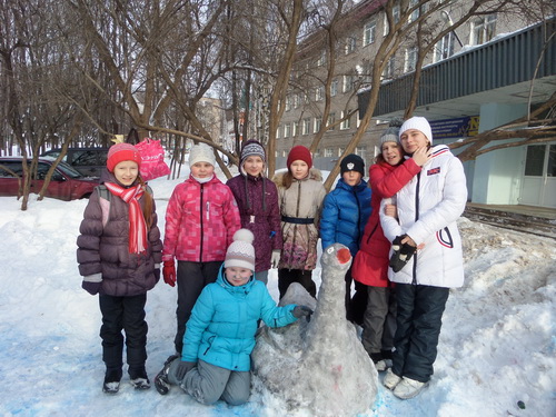 Снежные фигурыВ воскресенье, 18 января, около музыкального колледжа собрались дети и родители 4Е класса, чтобы принять участие в конкурсе снежных фигур. Казалось бы, что в такую погоду сложно будет что-нибудь вылепить. Но благодаря смекалке и умелым рукам юных скульпторов и их родителей из непослушного снега появляются красивые фигуры. И вот уже как в «Лебедином озере» Петра Ильича Чайковского пред нами явились лебеди. Сколько радости и удовольствия в процессе работы получили дети и взрослые!