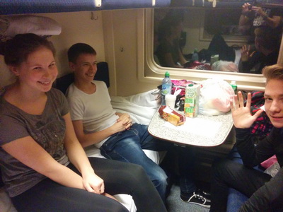 Начало путешествияВот мы и в поезде! Началось наше путешествие в страну Туманного Альбиона - Великобританию. Мы уже отъехали от станции Ижевск и уютно расположившись в купе поезда мы стали знакомиться друг с другом - нам предстоит почти неделя тесного сотрудничества и приятного времяпрепровождения. После вкусного ужина, заботливо приготовленного нашими родителями, мы с большим интересом делимся своими мыслями о предстоящих экскурсиях, поездках и конечно же шопинге. Девчонкам хочется обойти известные брендовые магазины, а мальчишки хотят заглянуть во все технические музеи. За окном темно и отражаются только наши веселые счастливые лица в ожидании увидеть ту страну, о которой так долго мечтали. До встречи на Казанском вокзале!