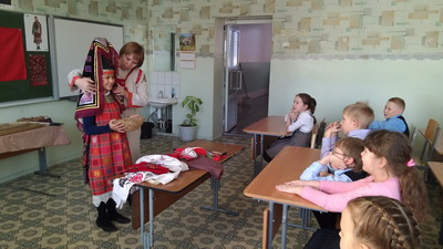 Национальная одежда удмуртского народаУчащиеся 2В класса посетили музейный урок образовательного центра «Краевед». В форме сказки ребятам рассказали о национальной одежде удмуртского народа. Экскурсовод Булдакова Марина Вольтовна показала отличия в нарядах северных и южных удмуртов. При рассказе национальные костюмы примеряли на детей, что вызвало бурный восторг. Очень подробно был показан свадебный костюм. Во время урока повторили цвета, которые присутствуют не только в костюмах, но и на государственной символике Удмуртии. Урок пролетел очень быстро. Благодарим Марину Вольтовну за великолепный материал. Ждём новых встреч.