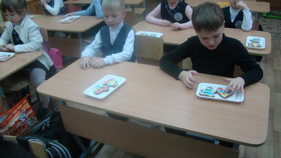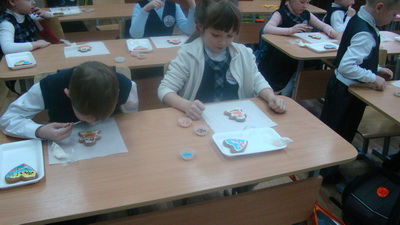 Подарки своими рукамиСкоро хороший праздник «День всех влюбленных». Сегодня у учеников 1в класса был необычный мастер-класс: мы учились делать чудеса. Ребята очень любят своих родителей и решили им сделать к празднику подарки своими руками. Сначала мы узнали почему «пряники» так называются. (Оказывается «пряник» и «пряность» - слова-родственники). А ещё сладкой глазурью и марципаном с посыпкой можно целую картину нарисовать! Этим мы с удовольствием и занимались, потому что краски были съедобные! Мамам ребята решили подарить сердечки, а папам пряничных солдатиков. Вот как мы постарались! Мамы и папы, мы вас любим!