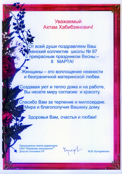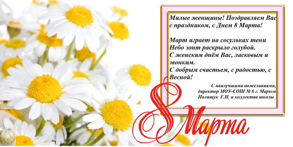 В школу поступают поздравление с 8 марта от наших друзей и коллег.