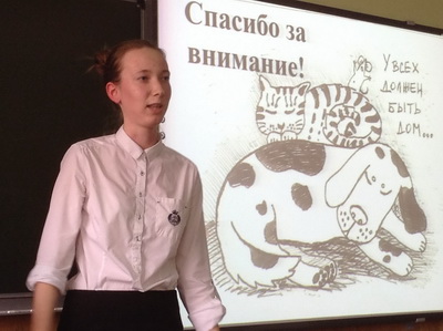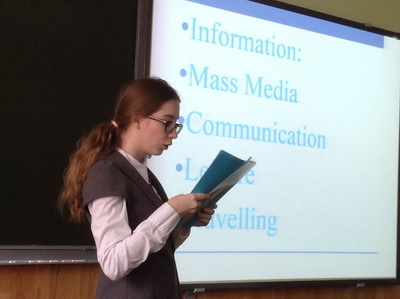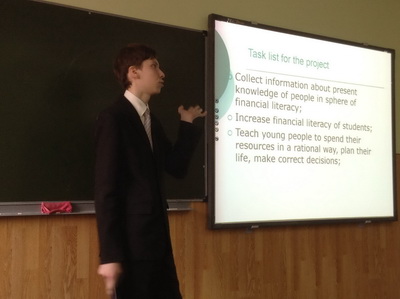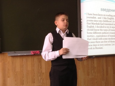 "Точка опоры" по-английски11 марта школьная научно-практическая конференция "Точка опоры" собрала вместе школьников 5-11 классов, выполнявших исследования и проекты, их руководителей и зрителей. На участие было заявлено более 50 работ в разных секциях. 11 работ были представлены на секции "Английский язык и общественные науки". Жюри отметили высокий уровень подготовки конкурсантов, глубину проработки каждой темы и актуальность предложенных работ, среди которых не только исследовательские работы, но и проекты. Ярослав Ревин, ученик 5 класса, несмотря на юный возраст, поразил всех талантом переводить стихи на русский язык, выдерживая все каноны поэтического перевода. Дарья Харина, 9 класс, исследовала зависимость успеваемости школьника от скорости чтения. Александра Тиханова, ученица 9 класса, провела анализ популярности электронных денег и поделилась прогнозами о том, в какой форме мы будем использовать деньги. Ярослав Базуев, 11 класс, выступил с интересной инициативой провести курс для 5-6 классов школы по теме "Финансы и я". Хромова Светлана и Козак Анна, 11 и 10 класс, убедили в актуальности проекта "Приют для собак", в то время как Святослав Селиванов, ученик 7 класса, увлекательно на английском рассказал об идее создания в школе Шахматной комнаты, для которой он уже предложил макет. Мария Чигвинцева, 10 класс, представила образовательный проект "Прогулки по городу ". Маша считает, что обучая за пределами кабинета, мы можем больше узнать об истории и традициях города. Интересно было также узнать о fun fiction, Movember, суевериях в разных странах и истории возникновения названий разных компаний. По итогам участия в школьной конференции в секции "Английского языка и общественных наук" было решено наградить всех участников грамотами и присудить различные номинации.