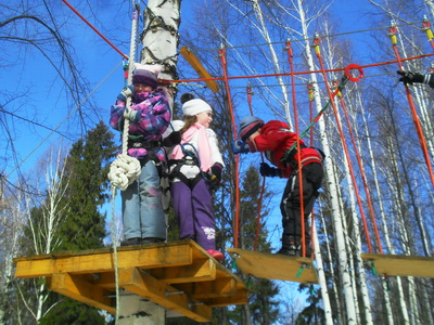 В выходные дни ученики 1л класса вместе с родителями и классным руководителем отправились в парк имени Кирова. Детей ждало настоящее испытание: нужно было пройти по маршруту второго уровня сложности в «верёвочном парке». Это преодоление страха, боязни высоты с настоящим снаряжением альпинистов! Не у всех сразу получилось пройти по маршруту. Были слёзы, страх и сход с дистанции. Долго плакала наша Анечка, но затем настроилась и прошла даже 2 раза весь маршрут. Все первоклассники молодцы! И родители не остались в стороне: кто-то готовил угощение, кто-то помогал на дистанции детям, а кто-то не удержался и сам отправился преодолевать трудности вместе с детьми. Хорошее настроение и аппетит – вот результат нашего дня здоровья. Вместе с первоклассниками были и младшие братья. Пройдёт немного времени, малыши подрастут и придут в нашу школу.