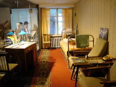 На экскурсии мы уже выяснили: «леса полунебоскребов» выросли в Свердловске достаточно давно. В царское время жилая застройка была не выше 3-го этажа, над городом возвышались только величественные соборы. Но в 30-х годах здесь были возведены самые высокие здания, вне Москвы — аж в 10-11 этажей! А не так давно в столице Урала снова построили самый высокий за пределами столицы российский небоскреб. Изначально, почти 200-метровая башня, часть бизнес-центра Антей, задумывалась как просто Антей-3. Но хозяева решили для лучшего пиара дать ей собственное имя. Объявили городской конкурс и победителем признали название «Высоцкий». В Екатеринбурге Владимир Высоцкий был два раза. К нему отношение трепетное, здесь хорошо помнят два его визита. Впервые бард приехал на гастроли в Свердловск, в 1962 году со спектаклем «Путешествие вокруг смеха». Город Высоцкому не понравился настолько, что актер постоянно был в плохом настроении. В марте, когда гастроли закончились, его уволили с формулировкой «за полное отсутствие чувства юмора». Еще задолго до строительства этой башни, у соседнего вдвое более низкого небоскреба Антей-1 поставили очень симпатичный и человечный памятник Высоцкому и Марине Влади. Для всех поклонников творчества известного поэта в здании небоскрёба «Высоцкий» открыт Екатеринбургский Музей Владимира Высоцкого, на открытии которого присутствовал сын барда Никиты Высоцкого. Музей небольшой, но довольно любопытный. Концепция Музея уникальна, вехами показана вся жизнь Владимира Семеновича. В основу экспозиции вошли личные вещи Владимира Высоцкого. В Екатеринбургском Музее представлен ряд экспонатов, которых нет нигде в мире: это и легендарный Mercedes 350 W 116, принадлежавший Владимиру Высоцкому с 1976 года; это и первая в мире восковая фигура Владимира Высоцкого, созданная скульптором Александром Сильницким по заказу Екатеринбургского Музея. Документы, афиши, личные вещи… на прозрачной стене то самое критичное письмо Высоцкого из Екатеринбурга, а за ней — полностью восстановлена обстановка «маленького номера с мизерными удобствами», в котором он жил. На экране непрерывно крутится упомянутый фильм, в небольшом зале можно увидеть немногочисленные видеозаписи выступлений певца. Сняв телефонную трубку таксофона, необычного для современного поколения, можно услышать песни кумира молодёжи прошлого века. Это уникальная возможность для современных детей узнать кто такой Владимир Семёнович Высоцкий.