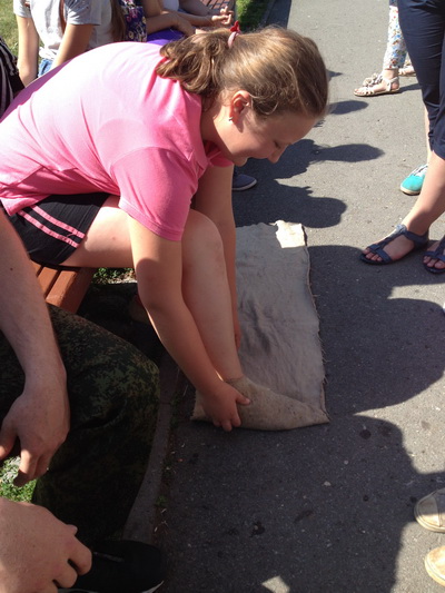 Возложив цветы к Вечному огню, отряд «Колорит» принял участие в квест-игре «Военными тропами» в рамках Республиканской творческо-патриотической акции 22 июня «Что такое Родина?». Нас заинтересовали экспонаты музея памяти молодёжной общественной организации «Долг», мы попробовали сами поставить палатку, пройти по минному полю, спасти раненого и даже намотать портянки. Успешно справившись с заданиями, отведали солдатской каши. Мы благодарны организаторам акции, позволившим нам выразить сопричастность к истории Великой Отечественной войны.