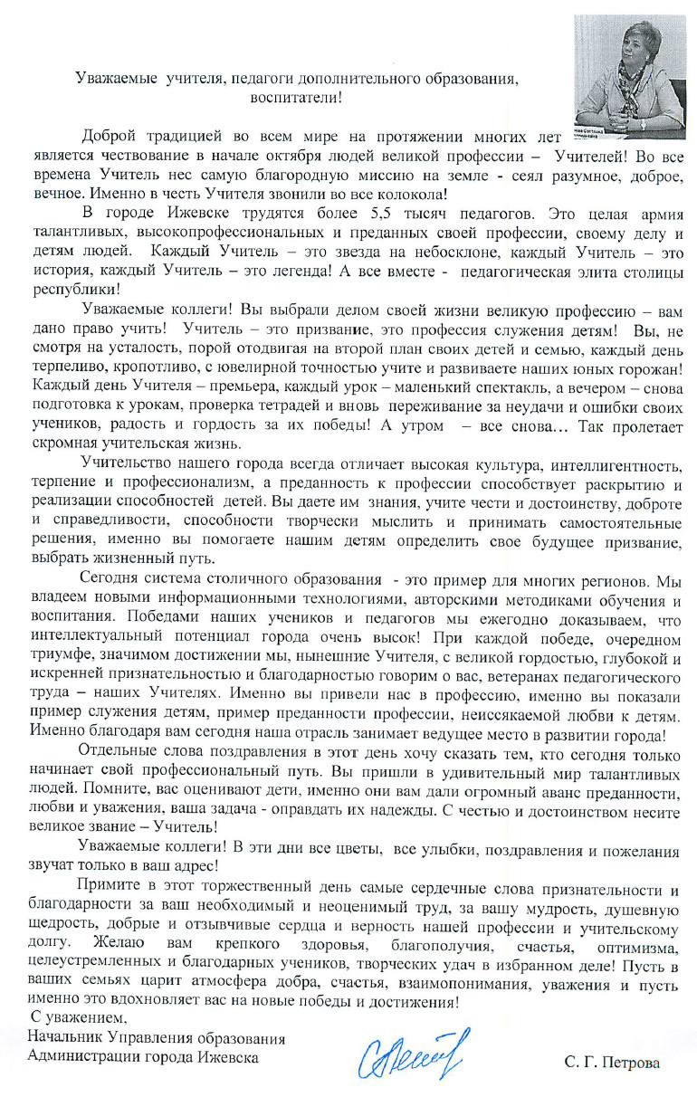 Поздравление Светланы Геннадьевны Петровой с Днем учителя