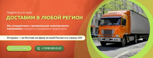 Продукция экологична, что подтверждает экологическую чистоту. Команда экспертов всегда готовы подобрать оптимальное решение. Мы предлагаем быструю и надёжную доставку по всей России логистическими партнёрами.